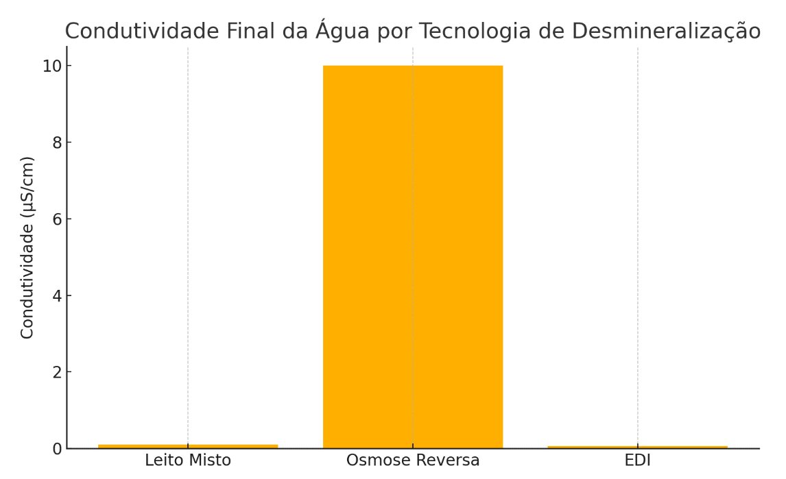 | Critério | Leito Misto | Osmose Reversa (RO) | Eletrodeionização (EDI) |