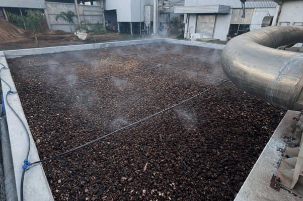 Quando o meio filtrante é composto por cavaco de eucalipto novo, há maior probabilidade de lixiviação de extrativos solúveis pela água de chuva. Entre os compostos citados estão taninos, fenóis, polifenóis e fragmentos solúveis de lignina.