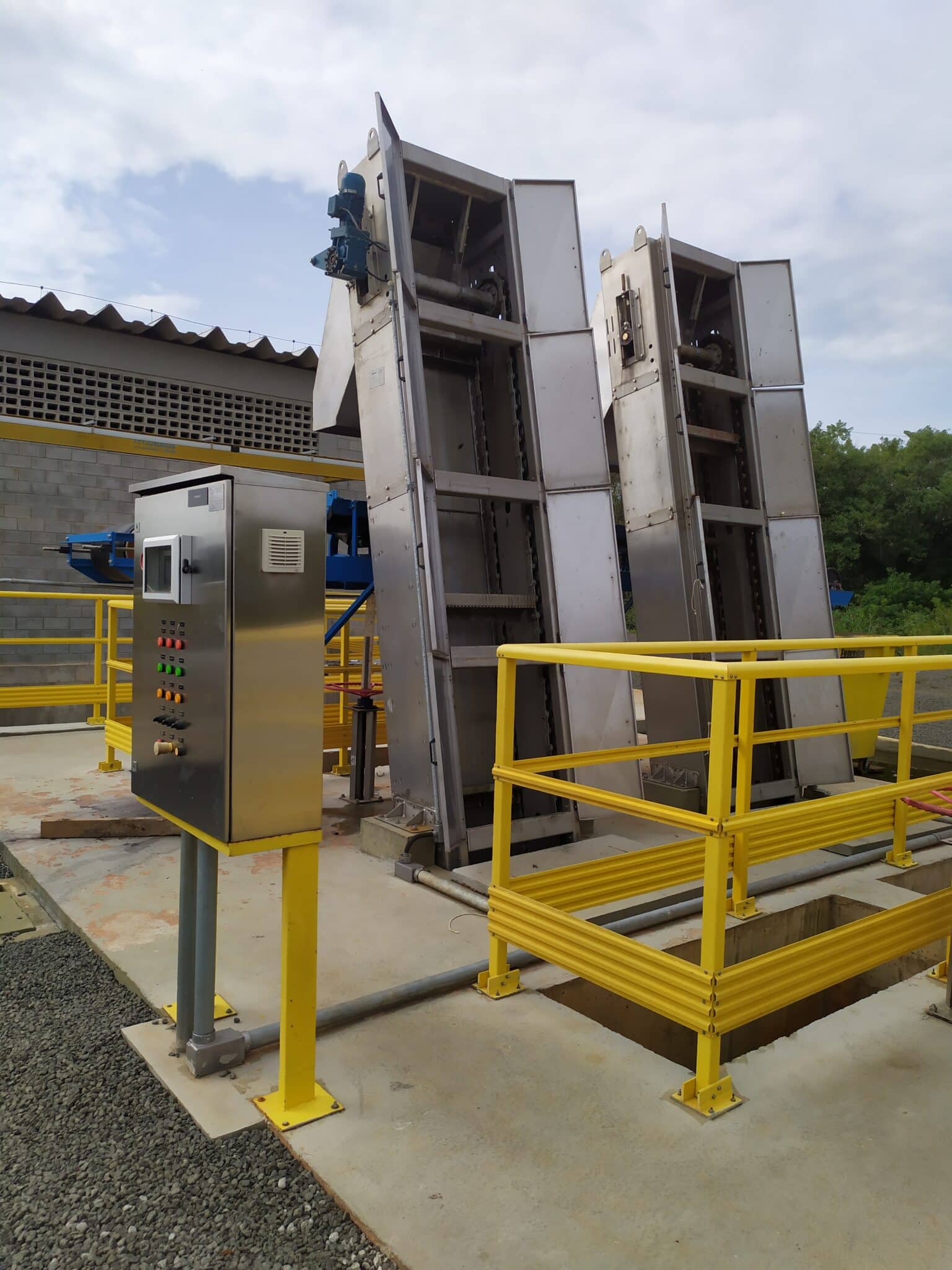 Antes de mais nada, a Grade Cremalheira mecanizada funciona em dois modos, manual e automático, e é constituída por barras retangulares posicionadas de forma a se obter o espaçamento correto ocupando a largura total do canal.